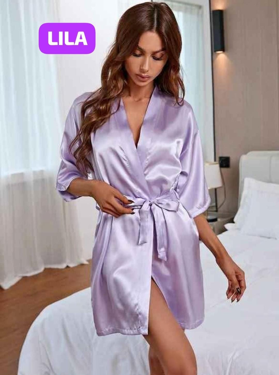Confeccionada en satín de alta calidad, esta bata tiene un brillo elegante, costuras delicadas y un cinturón ajustable que se adapta a tu silueta.