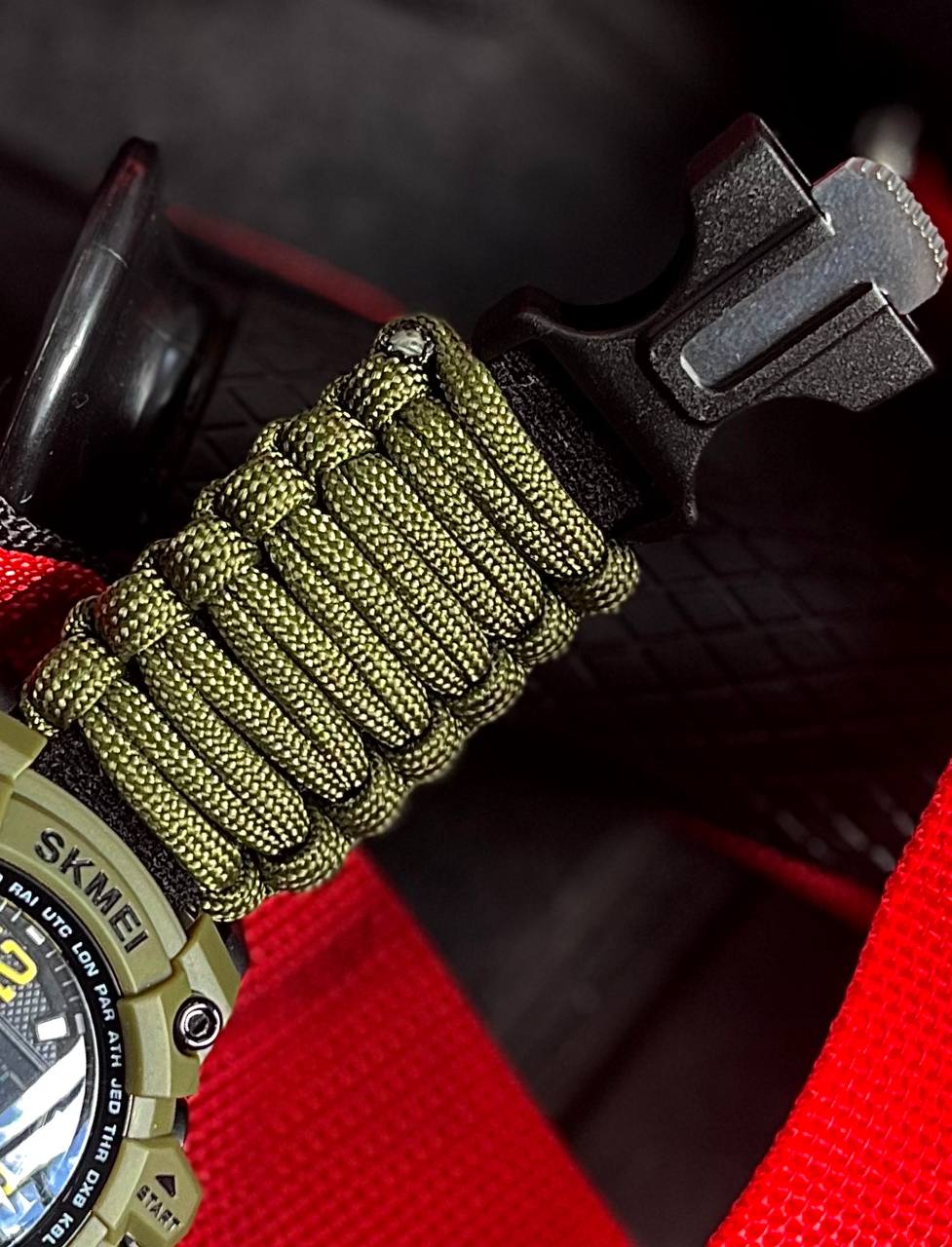 Más que un reloj, es tu equipo de supervivencia en la muñeca: enciende fuego, corta cuerdas y materiales, guía con su brújula, te alerta con su silbato y resiste cualquier terreno. Ideal para aventuras, misiones tácticas o emergencias.
